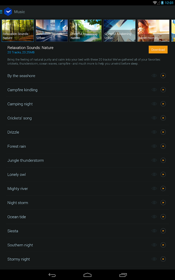 - Fall asleep listening to the high quality relaxation sounds: